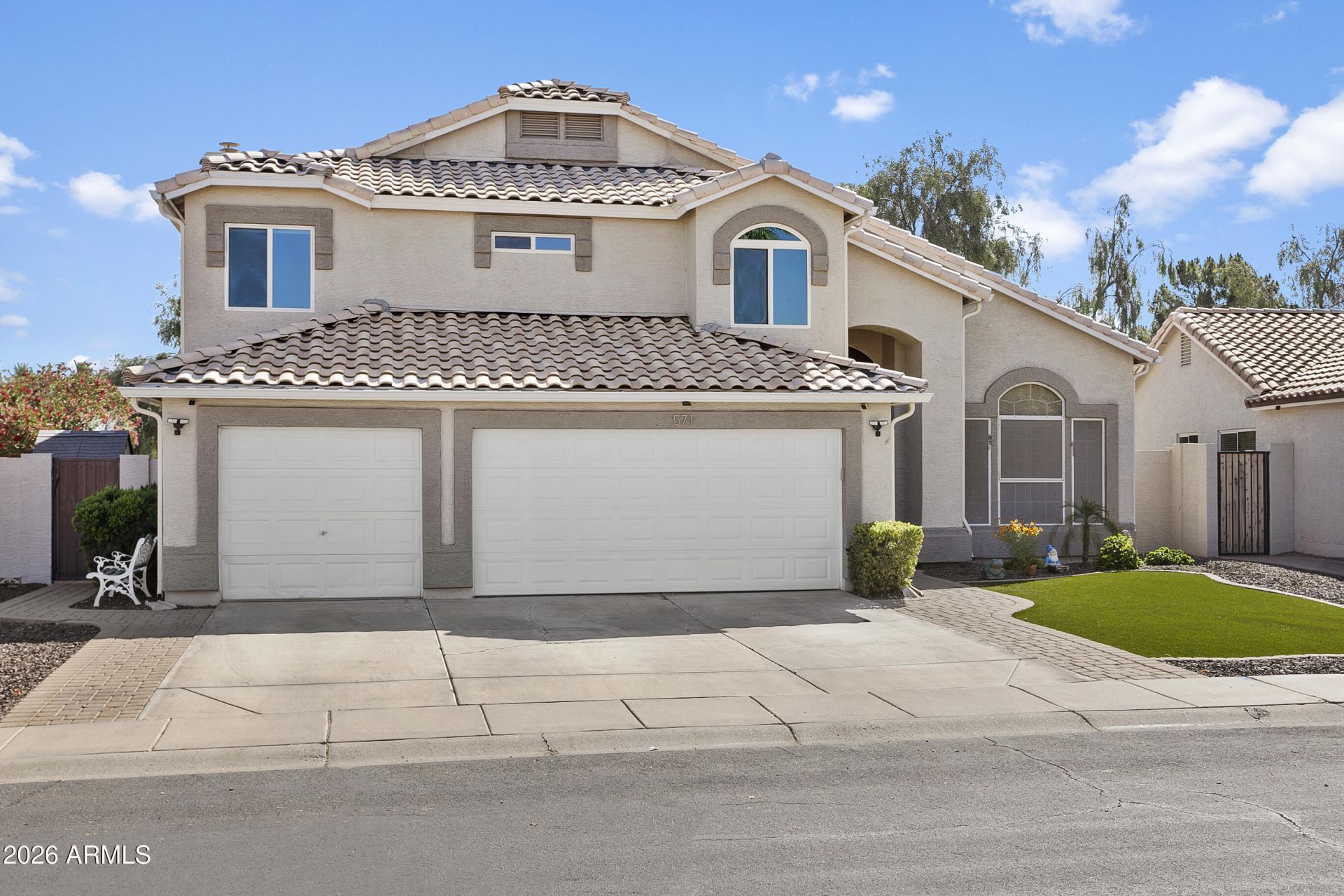 571 N Kingston St offers resort-style living right on the golf course in highly sought-after El Dorado Lakes! This stunning 5-bed, 3-bath home boasts a private backyard oasis featuring a sparkling pebble-tech pool with waterfall, covered patio, artificial turf, firepit, and beautiful fairway views along the Kokopelli Golf Course--ideal for year-round Arizona entertaining and relaxation.Inside, the oversized master suite shines with two versatile bonus rooms (perfect for offices, lounges, nurseries or guests) and a jaw-dropping custom walk-in closet with a central island. It also features a remodeled custom kitchen and updated baths.Experience the ultimate East Valley lifestyle near parks, shopping, dining, and top-rated Gilbert schools. A true golf-course resort paradise!